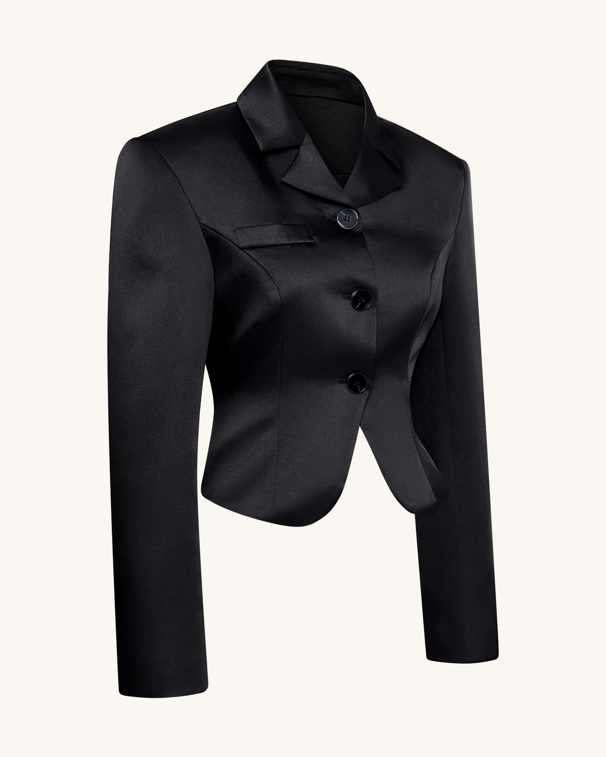 -70%Satin Sculpted Waist Cropped Blazer - Black—
